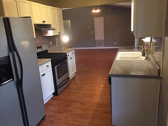 Redone from top to bottom. Great 3/2 house all on one level. 2 car attached garage with garage door opener. New flooring thoughout with vinyl plank flooring in the Living Room, Kitchen and Hall, with new carpets in the bedrooms. Interior freshly painted. Available immediately