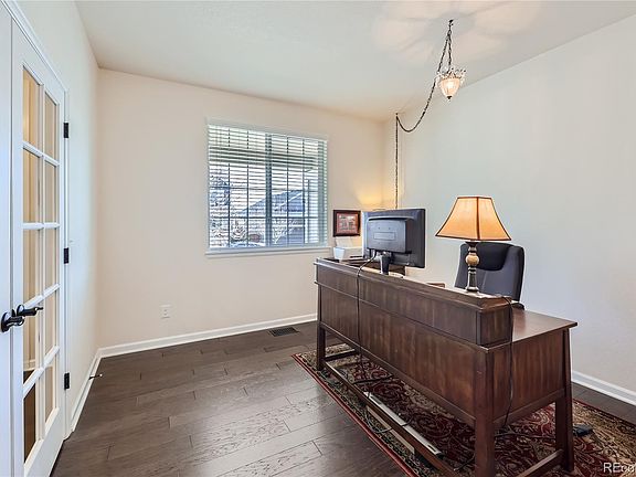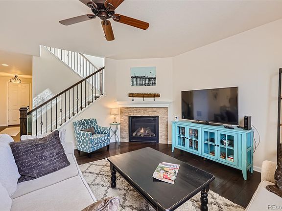 Turnkey Richmond home on quiet corner site across the street from community park. Many upgrades and a Very strong floorplan with 5 bedrooms, 3 & 1/2 baths, 3 large living areas, main floor study and an amazing backyard. Backyard features beautiful water feature, 2 flagstone patios(550 sq.ft. of flagstone), gas line for barbeque and hot tub pad with 220 access. Enjoy morning coffee on the covered front porch while looking out at the community park across the street. Each level of this 2 story home with finished basement has a gathering area, enjoy 3619 finished square feet(the basement was finished by the builder at time of original construction in 2016). All appliances(even washer and dryer) are included. Garage has 220 outlet for your electric car or power tools. Red Hawk Ridge golf course, restaurant and bar are 1/2 mile up the street. Easy access to all the amenities of Castle Rock and shopping, restaurants, etc. Discover this fine home!!! Ready for quick closing and possession.