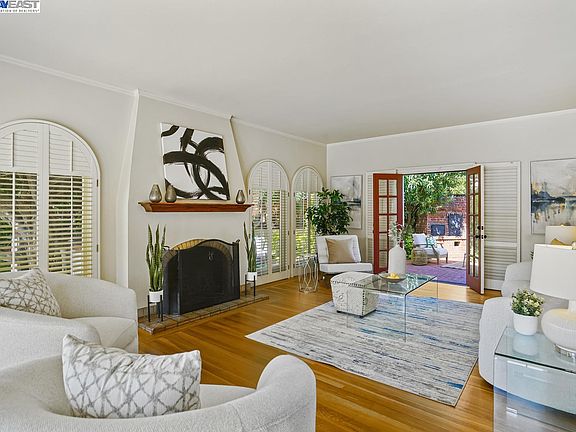 Stunning Alameda home with three plus bedrooms, two and one-half bathrooms, spread over 2,500 sq ft of living space. Characterized by large, sunlit rooms with beautifully preserved vintage details. This beautiful home features refinished white oak flooring, modern kitchen, formal living and dining rooms, an eat-in kitchen, home office/guest room, laundry room, detached garage and private outdoor sitting areas. The recently painted interiors provide a clean and modern feel. One of the most special features of this home is the tranquil, beautifully landscaped patios and gardens surrounding the property. It is filled with mature citrus and Japanese maple trees, gorgeous camellia, and other meticulous plantings. A brick oven/barbecue and a showcase, detached garage is located at the end of the long driveway that's gated for security and privacy. Located in one of Alameda's most coveted neighborhoods, with top-rated schools, transportation, shopping, and water nearby. Rare opportunity to own a beautiful turnkey property in a highly desirable area. Don’t miss this opportunity!