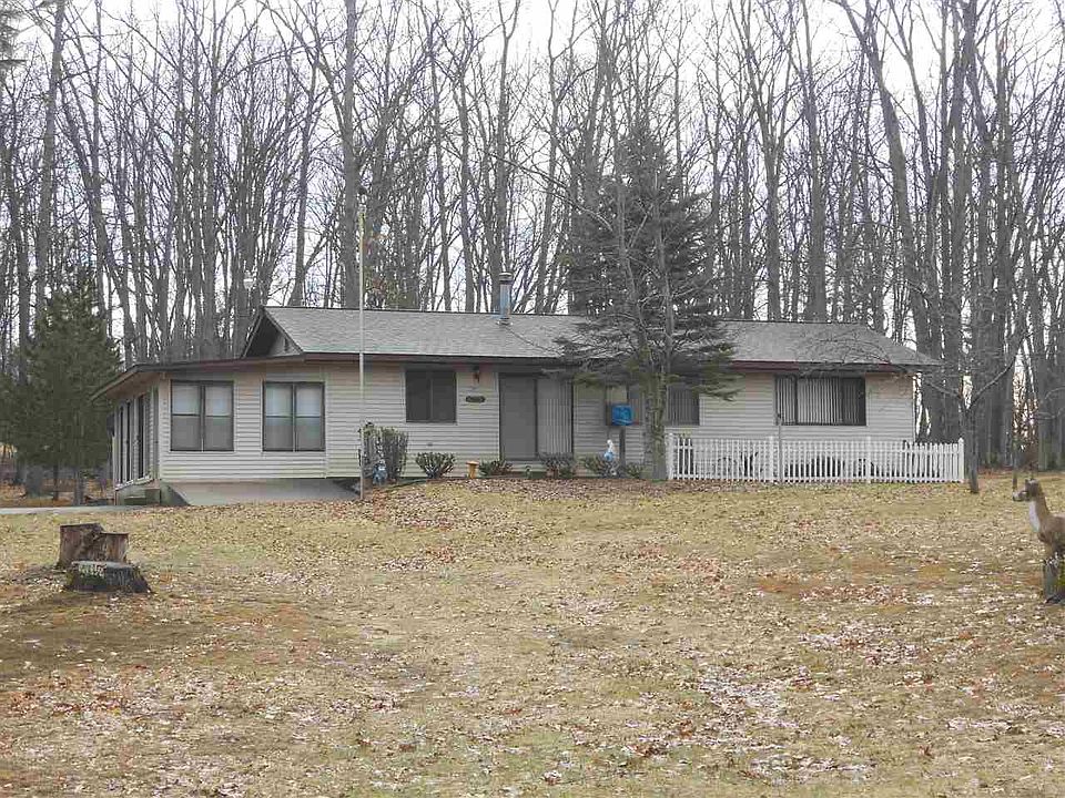 Private wooded setting! This 3 bedroom, 1 bath home sits on 2.45 wooded acres just minutes to road end access on beautiful Higgins Lake. Ceramic tile flooring, charming kitchen, 3 season attached porch, 2 car detached garage with 12x26 carport, 2 separate sheds, quiet setting and almost fully furnished. This home just needs your personal touch.