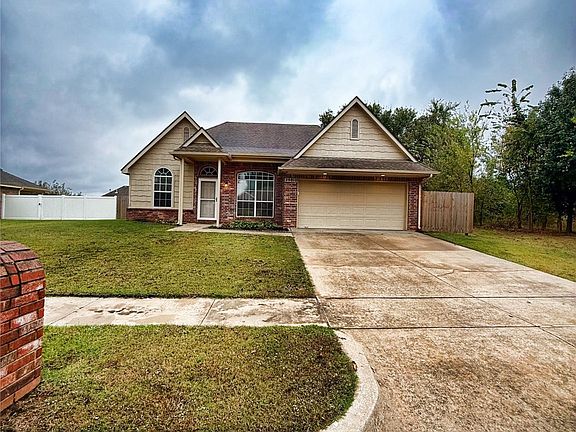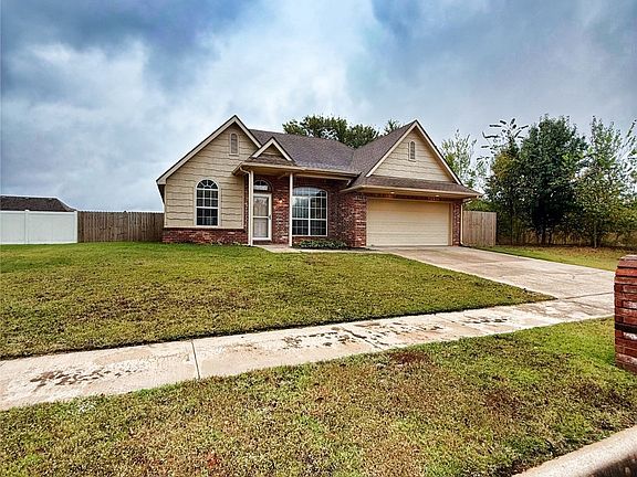 Wonderful single story home in Coweta! Located in a quiet, desirable neighborhood at the end of a cut-de-sac. The home features a split floor plan consisting of 3 bedrooms and 2 full bathrooms. The living room flows to the dining area and kitchen, making the area open and airy. The laundry room is separate and conveniently situated just off the living room, leading to the garage. The primary suite offers a large vanity, separate water closet and walk-in closet. The larger back yard is fully fence and has a durable shed for lawn equipment and outside toys. This home has been filled with love and children, but is now ready for its new owners to add their personal touch. Call to schedule your showing today!