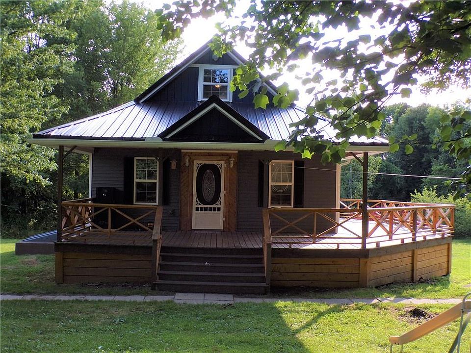 Secluded, Updated 1 1/2 Story Home on Over 7 Acres. Wrap around Deck with Covered Front Porch. Spacious Living Room with Woodstove to Assist with Heat Bills Opens to Deck. Applianced Kitchen, Dining Area/Entryway, Updated Full Bath plus 2 Bedrooms on 1st Floor. 2nd Floor offers Large Open Bedroom with Closet. Detached Garage with side Canopy. Updates include Metal Roof & Siding. Penncrest Schools.