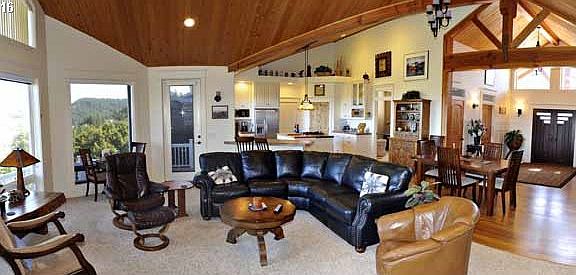 Single level home with top of the line finishes and a view that doesn't quit! See the Rogue River, Pacific Ocean, Rogue Reef and the Jetties from almost every window in this home. Oak hardwood floors, vaulted Port Orford Cedar ceilings, rainbow sandstone countertops, gas appliances, Master suite with fireplace, jetted tub and vessel sinks. Stamped concrete patio and a small, manageable yard. Radiant floor heating system. Beautiful!
