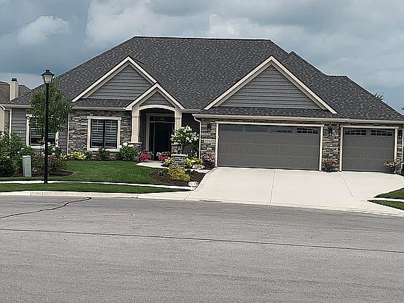 Granite Ridge, custom built Villa in Grey Oaks Villas. Built in 2019, this 3 bedroom 2 bath open floor plan home features a home office/home theatre room, custom kitchen with high end cabinetry, a massive walk in pantry, high end vinyl wood flooring, a huge, custom built, walk in master closet, a massive walk in shower with an additional rain forest faucet, a huge 3-car garage with custom built storage shelving and decorative epoxy flooring, a very “chill” screened in porch with football watching tv, a covered patio and custom patio featuring a gathering area and fire pit, sod and an irrigation system. The home is one level with no basement and or sump pump to worry about, a cup de-sac location with virtually no traffic to worry about and the Villa HOA fees cover all grass cutting, snow shoveling and driveway plowing.