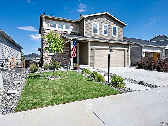HIGH-END FINISHES, AFFORDABLE LUXURY, and READY FOR YOU TO MOVE IN! Why wait for a new build when you can move into this beautiful, like-new, two-story home with ALL of the upgrades?! Stunning, well-maintained 3-bed, 3-bath home with a separate loft/flex space, a large backyard (lot premium!), and the COMPLETE PACKAGE of upgrades. The main level features beautiful, wood laminate flooring, upgraded light fixtures, a modern gas fireplace, 9-foot ceilings, and an abundance of natural light. You'll be sure to notice the high-end finishes in the kitchen, complete with custom cabinetry, quartz counter-tops, a large eat-in island, upgraded stainless steel appliances, gas range and oven, and a separate pantry to add to your cabinet storage. The open-floor plan lends itself well to the ultimate dining and entertainment experience, with the ambiance of the modern gas fireplace and the oversized, 4-panel custom sliding glass patio doors. The second-level primary bedroom features mountain views, a large, walk-in closet, and a luxurious en-suite bathroom with a double-vanity and step-in shower. There are two additional bedrooms on the second level, a full bathroom, a separate laundry room with custom shelving, and another living area that can be used as a home-office, play room, or game room. The expansive backyard is perfect for bringing everyone together or for simply enjoying the beautiful Colorado outdoors. Relax on the covered patio as you look out into the open space, watch a movie on the attached projector screen, spend time in the garden, or gather around the fire pit. The 2-car, attached garage is fully insulated, dry-walled, and epoxy-coated for added protection and cleanliness. Located in the esteemed Lakes at Centerra, this community offers mountain and lake views, a large community pool and clubhouse, a community dock on Houts Reservoir, BBQ and fire pits, and plenty of walking and biking trails. There's plenty to appreciate about this home! THIS HOME WON'T LAST!