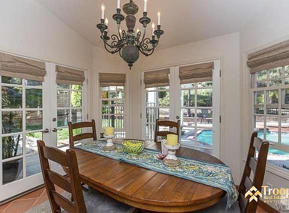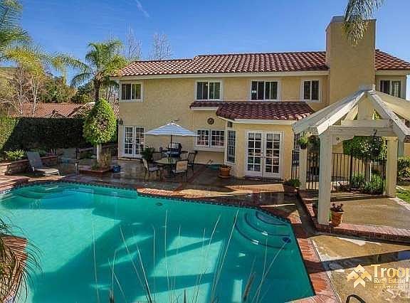 Welcome to this charming Indian Hills 2-Story home featuring highly desired amenities including gated RV parking, a tiered brick porch, a double door entry, a Formal Living Room w/a brick fireplace & vaulted ceiling, a Formal Dining Room w/a chandelier & French doors to the backyard displaying a sparkling pool & spa, a grassy yard, brick planters & more! Other wonderful features include hardwood & Saltillo tile flooring, an open & bright island kitchen w/a breakfast bar, a Breakfast Nook w/French doors & casement windows, an inviting Family Room w/custom wainscoting, crown molding, a custom wet bar w/a coffered ceiling & more! The upper level features a beautifully updated tumbled marble hall bathroom, 4 bedrooms including the spacious Master Suite w/a vaulted ceiling, a brick fireplace, an updated master bathroom w/travertine surrounds & a walk-in closet. This is a rare find in Indian Hills & a well-loved & cared-for home w/loads of upgrades! Absolutely charming!