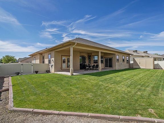 Exquisite home on corner lot in Chipeta Glenn! The minute you step into this well-maintained home, you'll notice the thoughtful upgrades throughout, which include: solid surface countertops, stainless steel appliances,wood laminate flooring and beautiful solid wood doors! The open floorplan, which is perfect for entertaining, also allows for comfortable living, between cozy family room, additional office/den area and spacious living room, complete with ambient gas-log fireplace! Upgraded kitchen boasts plenty of cabinet storage and all major appliances included! 4 spacious bedrooms, including the luxury master suite that features dual walk-in closets, 5-piece bath with soaker tub and additional gas-log fireplace. Enjoy outdoor relaxation on the large covered patio that overlooks the pristine manicured lawn with privacy fencing. Plenty of RV parking behind double gates and poured pad!