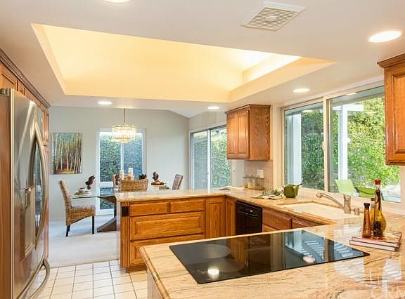 This Ranch style home is turnkey and neat as a pin! Whether entertaining or relaxing this open floor plan with abundant natural light is ideal. As you enter the home you are greeted by a spacious formal living room with vaulted ceilings and fireplace. The formal dining area is open to the kitchen which will appeal to the cook in the family. The kitchen features granite counters, stainless appliances, and two refrigerators! The kitchen also opens to a breakfast area and a large family room with beautiful sliding glass doors to the terrace and expansive backyard (with plenty of room for a pool!). The master bedroom has private access to the backyard and has it's own private bath. Three additional bedrooms and another bath complete this wonderful home. Additional property highlights include: central air and heating, dual paned windows, plentiful storage space, freshly painted throughout, in close proximity to the Rossmoor shopping center, easy freeway access, and located in the highly sought after Los Alamitos school district. Do not miss this wonderful opportunity to own a home in Rossmoor!
