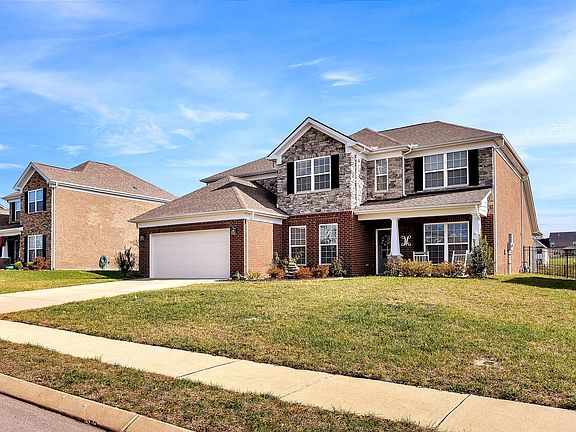 Beautiful move-in ready home/Full brick and stone/ Tons of upgrades on a gorgeous lot backing to common ground & small creek giving room to play sports. Open floor plan with 4' added to Family Room. 31x27 Kit/Family Room perfect for entertaining with a nook for computer & home management. Stone FP. Butler's pantry. DR/ Potential 5th bd down in front rm w/closet or hobby room( no closet). Upstairs are 3 large bedrooms with walk in closets, 2 baths and a big bonus room. Walk in storage. Huge garage is 24x23 plus additional 10x7 tandem on one side. Custom laundry has sink, numerous cabinets & folding table. Wood treads on stairs/Nice molding/ Speakers on screened porch & LR./Sep. patio/ Fenced bkyd. Backs to common area so no homes close behind it. This home is a Blue Ribbon # 10 home! 1.5 mi to new I65 Exit when complete in 2024.
