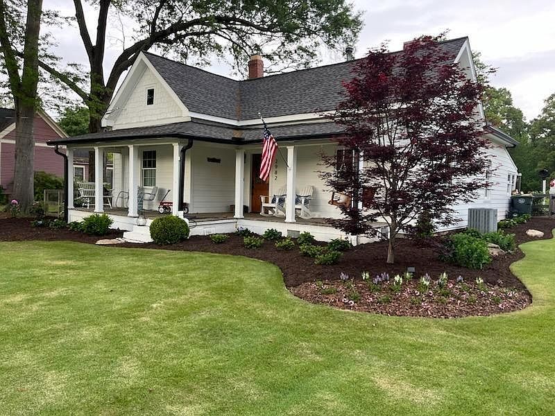 Rare opportunity in the heart of Kennesaw! This enchanting bungalow in downtown Kennesaw offers an incredible mix of historic character and modern convenience. The rocking-chair front porch overlooks Adams Park for a serene view and the one acre lot has been meticulously landscaped and maintained. The home boasts an updated kitchen & master bath, original heart-of-pine flooring, high ceilings with bead board, crown molding and a working back-to-back fireplace. A recently built two-story detached garage with one-bedroom apartment above is a fantastic bonus - perfect for guests, rental income, or even a private retreat. Recent HardiPlank siding is on the exterior and the back yard is fenced with a new storage shed. Across the street is Adams Park with a Recreation Center, ballfields, tennis and pickleball, playground and picnic areas. Walk to downtown Kennesaw and enjoy the Museum, dining, festivals, holiday celebrations and concerts in the new amphitheater. Just down the road is the 40-acre Swift Cantrell Park with a Dog Park, walking track, exercise stations, playgrounds, picnic facilities and outdoor movies.