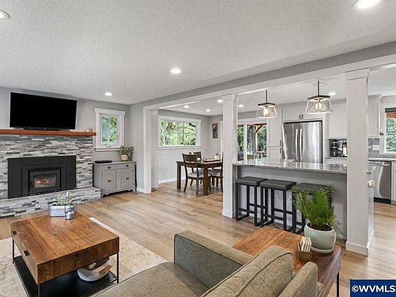 Experience the perfect blend of indoor and outdoor living in this beautifully remodeled home, featuring a full update in 2022, including a new roof, siding, and windows. Inside, you'll be captivated by the open floor plan and a stunning kitchen that forms the heart of the home. Step outside to enjoy a spacious patio and covered area, ideal for entertaining. The exterior also boasts a shed, RV parking, lush gardens, a play shed, and a designated area for chickens, making this property a true outdoor oasis.