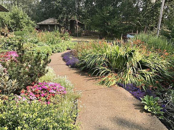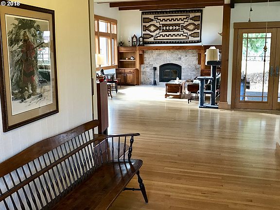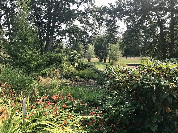 Custom home on 6 acres tucked away at N. end of Fern Ridge Reservoir peninsula. Environmentally friendly setting. 42 pv-solar panels feed into electric grid, 2 thermal solar panels on home for hot water, geothermal heating & cooling from well, radiant floor heat in master bath. Passive solar from the many windows & skylights. Large open barn, large shop, plant shed, fruit trees/gardens, pond, generator, 700 sf cottage