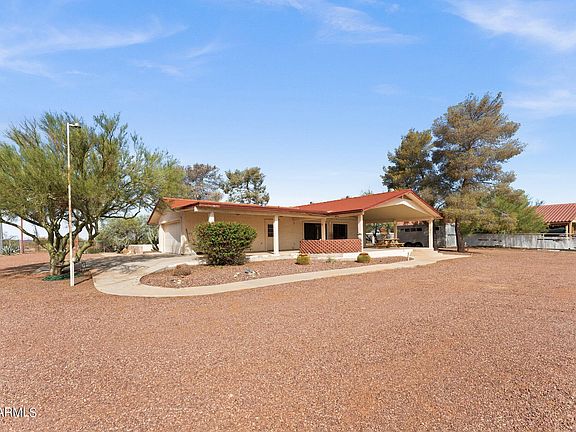 This amazing horse property is waiting for you to call it home! On just under 2.5 acres, this cute 2 bedroom, 2 bath home comes fully furnished and has the best Arizona sunrises from your elevated back patio. This property has plenty of room for your horses with the barn, hay storage, a tack room, 5 stalls, an RV spot and a large turnout behind the stalls. There is also additional acreage in the back that could easily be made into an arena of any kind. Located near the Team Roping Capital of the World, you won't want to miss seeing this one!