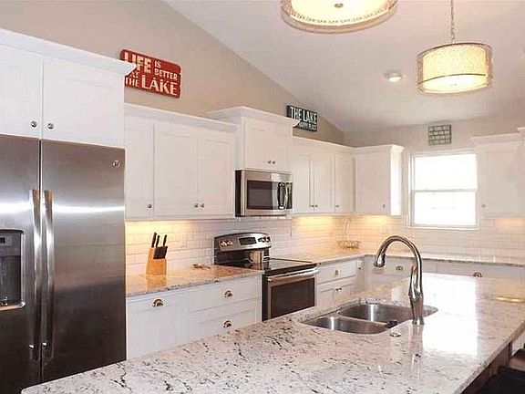 Heaven awaits you at this fully furnished 4 bed 3 bath turn key unit w/ privacy and year around owners in the community. It feels amazing when you walk thru the door with the vaulted ceilings & immediate view of the Lake. This unit has tons of upgrades including white shaker-style cabinetry, pantry, large granite island, subway tile backsplash, under-counter lighting, tile floors throughout, and the lower level offers a lakeside, screened, walk-out patio with no stairs and just a few steps way to the dock. You won't be able to decide which Master Suite you want as you have one on each level. Showers are upgraded with tile surround. Three of the four bedrooms are lakeside with views & have access to deck/patio area. This property also provides for blacktop roads, a flat driveway & an attached 1 car garage with extra refrigerator for your lake side beverages. Your 12x32 dock slip with 6,500lb lift & pwc space also with a lift are on the dock just in front of your unit. Located on a deep water cove where you’ll be able to enjoy swimming and taking your boat out even at the lowest time of the year! Enjoy the community pool just a few steps away as well as direct access to the water via the community boat ramp . This villa/townhome community does NOT allow nightly or weekly rentals, which keeps it private. This unit won’t last long! FOR SALE BY OWNER, will work with buyer realtor.