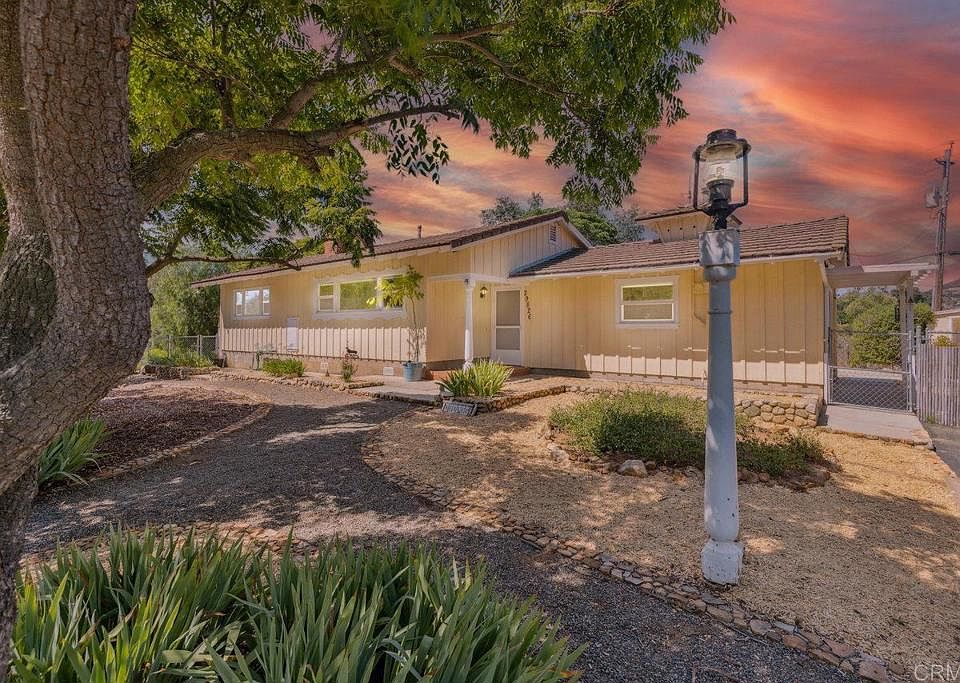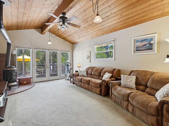 Nestled in the serene and picturesque landscape of Valley Center, this charming property offers a wonderful opportunity for those seeking a peaceful retreat. With its 2 bedrooms + detached office and 2 bathrooms, this single story home sits on an expansive 2.88 acre lot and comes with owned solar! Inside the home, you'll find a cozy living space with exposed wood beams and vaulted ceiling in addition to the living room fireplace and family room wood burning stove, creating a most welcoming atmosphere. The updated kitchen comes complete with quartz countertops and stainless steel appliances, perfect for creating your favorite meals. The property also features a large detached workshop/garage, a detached shed/office, and a fully fenced back yard - tinker with your toys, work from home, home school, convert either structure into a guest dwelling, so many possibilities to make this the ideal property for you! Priced at $765,000, it presents an excellent value for homeownership in this desirable area.