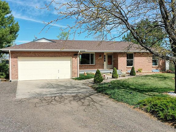 Horse Property close to Denver. This 3 bedroom + Office Home will wow you from the start. Many Trees on the property make this home look like a park. Enjoy your coffee on the front Trex Deck or on the back as you look at your view of the mountains. This Brick home has hardwood floors as you enter and a beautiful Gas Fireplace to enjoy. Enter into your kitchen with Granite counter tops and isle, Gas stove and trash compactor. 2 bedrooms are on the main level- primary with en-suite + an office. Bathrooms are tiled. Real Wood doors accent the home. Downstairs there is a large family room with another fireplace, workout area, Workshop area, laundry and another bedroom with En-suite. Walk out your sliding glass door to new concrete and more park like yard that is fenced. Next is your Outbuilding, 1200 Square feet with concrete and electrical. Big enough to put a 5th Wheel camper in. See the pictures. Small shed and 60% of property is fenced. Close to the Denver Metro area but you are still in the country. Come see this one and make it your new home.