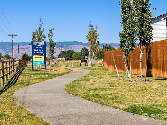 Ellensburg's premier new community Black Horse where there are mtn views in every direction, winding streetscape and an overall sense of community! City water/sewer, sidewalks, new community park & paved trail around entire neighborhood! Every homesite is fully fenced with front yard landscape and irrigation. Enjoy the lifestyle of being in the country, but close to the city! The CAMBRIDGE 5 beds + DINING & 2 car garage. Gourmet kitchen boasts Quartz counters, large island, full height backsplash, soft close cabinets. Modern fireplace ready for your flat screen above. Spa like Primary bath double sinks large soaking tub w/tile & quartz! Huge walkin closet! A/C included. $20,000 w/preferred lender MOVE IN READY - Refrig/washer/dryer included