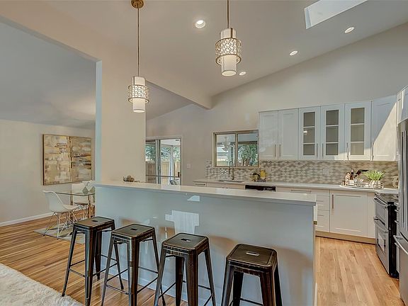 Stunning mid-century mod home, fully remodeled; all new kitchen flooded with natural light that features new cabinets, glass front with lighting, new Stainless Steel appliances, quartz counter tops with wine fridge. New bathrooms, all new tile, floating vanities with oversize drawers!! Beautiful refurbished wood floors throughout main and upper level. All new paint interior and exterior, new windows on sides, back and basement, new sliding door which opens to covered patio that provides another entertaining space to enjoy the lovely Colorado weather with family and friends. Large landscaped back yard with new cedar fence for privacy and fruit trees. New state of the art evaporated cooler!! A must see!!