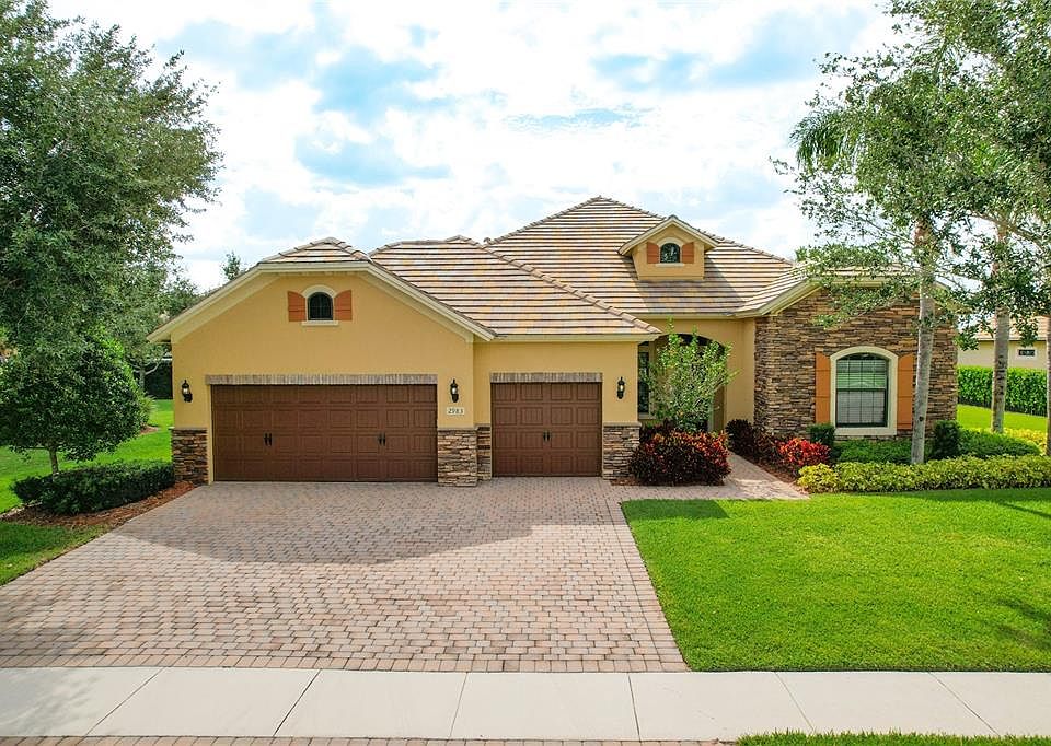SELLER CONCESSION AVAILABLE FOR INTEREST RATE BUY DOWN! Spectacular Sunset lake view with Spacious private LOT! Located just across from the community pool and club house. This premium lot offer 10 ft easement on one side and a huge community common area which will never be built on the other side. This lake front home gives you open privacy to enjoy great sunset lake view for entertaining and enjoyment. This distinctive, the most popular estate model - Dartmouth, Offering 2,561 S/F of open concept living space, upgraded 3 bedroom, 3 bath + den/office, split floor plan provide plenty of privacy with oversize 3 car garage, enhanced with an additional 4 feet added extension creating a generous space for vehicles and storage.Pull down attic access added with insulation and flooring for storage. Chef's kitchen with upgrade granite counters, enhanced island, 5 burner gas cooktop, walk in pantry.The attention to detail is also met in the laundry room area which features a wet sink, dark wood cabinets and corian counter tops.Master bedroom suit feature a large walk in closet, great lake view, double vanity, spa tub with separate show and linen closet.Generous sized second bedroom with en-suit bathroom. Third bedroom with large walk-in closet and bathroom. Separate den/office/guest room that allows for a very comfortable "work from home “environment. There is plenty of space to add a pool to your dream home.(Pool. Spa and heat pump prewired with 80 AMP circuit.). Castellina- A private gated community offers residents on site amenities, such as : fine clubhouse, modern fitness center, heated pool, multiple fountains, barbecue area, conversation fire pit, pickle ball and tennis courts. Lawn care is provided by the homeowner association who also preserves the unique and pristine integrity of this high end boutique community of only 260 homes. This care free living and a prime location near desirable shopping like Whole Foods, Trader Joe's and Wellington Green Mall.There are plenty of fine dining and casual restaurants, parks and golf courses nearby. 'A' rated Wellington Schools are all in close proximity. Easy 30 minutes access to Palm Beach International Airport. All information recorded in the MLS is intended to be accurate, but cannot be guaranteed. Square footage is taken from property appraiser's office. This home also listed at BeachesMlS :RX-10884340.