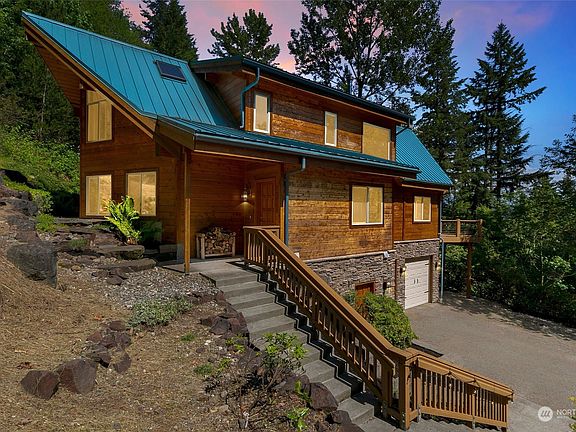 Welcome Home to a Slice of Peace & Tranquility on 6 private lush acres with gated entrance and direct access to 600 acres of hiking & mtn biking trails in Tolt-Macdonald Park. You feel like your on vacation everyday! This 3 story lodge-style, Pan Abode Home offers expansive views of the cascade mtns, Mt Rainier and more through a massive wall of windows surrounding you while relaxing in your cozy great room, or cooking in the Gourmet kitchen w/ granite and stainless steel, slate & ash floors throughout. Enjoy entertaining on your large wrap around Trex deck system w/covered area for dining, soaking in the hot tub, enjoying the beautiful Koi pond, & rich fountain, lush mature nature abounds. Min to DT Carnation, 15 min to Redmond. Must see!