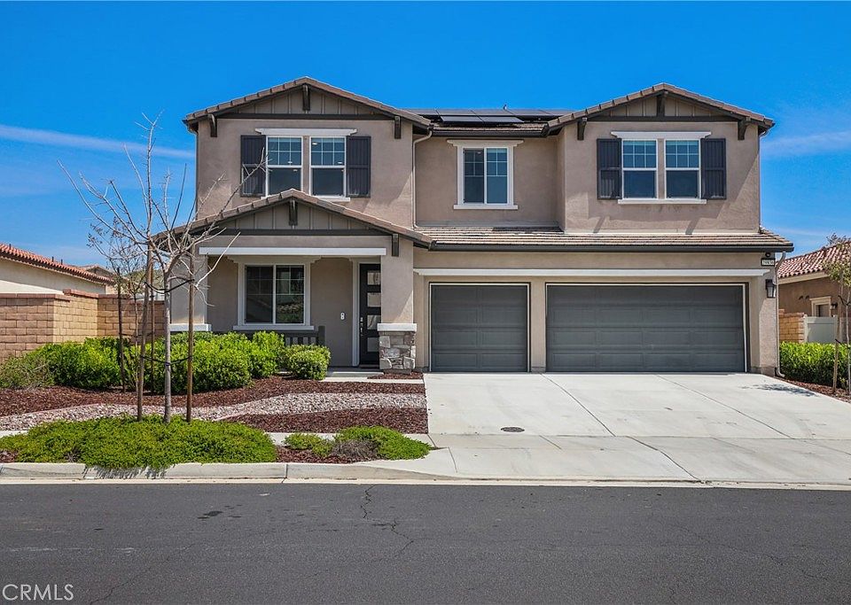 Welcome to your newly painted dream home WITH SOLAR nestled in the prestigious Audie Murphy Ranch HOA in Menifee. With one full bedroom and a full bathroom downstairs, as you step inside, you'll be greeted by a spacious and inviting living area flooded with natural light, creating an ambiance of warmth and comfort. The open floor plan seamlessly connects the living room to the modern kitchen, complete with sleek countertops, stainless steel appliances, and ample storage space. Each bedroom is thoughtfully designed with comfort in mind, boasting ample space, plush carpeting, and large windows that invite an abundance of natural light. The additional bedrooms are equally inviting, each offering its unique charm and character. Whether you choose to use them as guest rooms, home offices, or children's quarters, these versatile spaces can easily adapt to suit your lifestyle and preferences. The master suite is a true haven, offering a spacious layout, a walk-in closet, and a private en-suite bathroom. Wake up refreshed and rejuvenated each morning in this tranquil retreat, ready to tackle the day ahead. As you venture outdoors, you'll be greeted by a sprawling backyard, beckoning you to create your own personal oasis. With ample space for a pool and outdoor dining area, the possibilities are endless for creating your private retreat where relaxation and entertainment abound. Beyond the confines of your home, Audie Murphy Ranch offers an array of amenities for residents to enjoy, including parks, walking trails, sports courts, and a sparkling community pool. Whether you're seeking adventure or tranquility, there's something for everyone within this esteemed community. Conveniently located near shopping, dining, and top-rated schools, 29836 Saddle Ranch Place presents a rare opportunity to experience the epitome of Southern California living. Don't miss your chance to make this exceptional residence your forever home. Schedule a showing today and prepare to embark on a journey of unparalleled luxury and comfort. Welcome home!