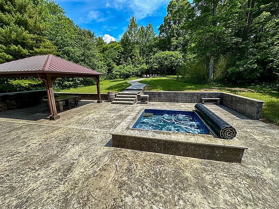 This incredible sprawling lodge, situated on over 27 private acres, is an opportunity you won't want to miss! Exterior features include luxury spa, grand patio area with bar, firepit, basketball/tennis court, and a plethora of outdoor seating areas. Currently used as a luxurious vacation property with 6 bedrooms, 4.5 baths and the capacity to sleep 20 guests, this fabulous property offers over 5200 square feet of awe-inspiring living space including eating space and living area on both the first floor and lower level, stone fireplaces, theater room, rec/game room, and so much more! Need even more space? With plenty of road frontage, this unique gem lends to additional opportunities to build additional structures to meet your needs or desires!