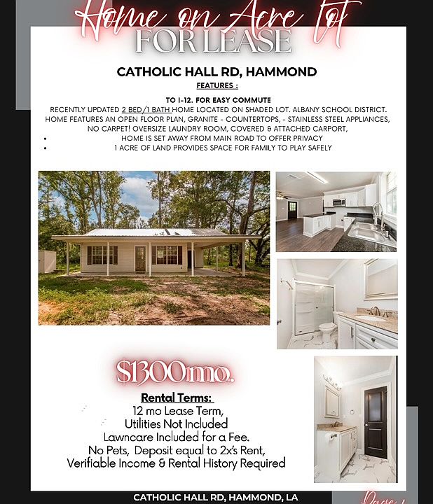 TO I-12 FOR EASY COMMUTE! RECENTLY UPDATED 2 BED/1 BATH HOME LOCATED ON SHADED LOT. ALBANY SCHOOL DISTRICT. HOME FEATURES AN OPEN FLOOR PLAN, GRANITE - COUNTERTOPS, - STAINLESS STEEL APPLIANCES, NO CARPET! OVERSIZE LAUNDRY ROOM, COVERED & ATTACHED CARPORT, HOME IS SET AWAY FROM MAIN ROAD TO OFFER PRIVACY 1 ACRE OF LAND PROVIDES SPACE FOR FAMILY TO PLAY SAFELY CROWN MOLDING AND MARBLE FLOORING. Requires a yearly signed lease agreement. Requires a background check. Must contact landlord immediately if any property is damaged. Grass is not included. Must keep outside area clean and free of debris.