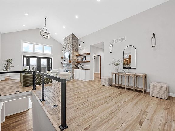 Simple luxury in a relaxed setting. As you enter from the post and beam front porch, a cathedral ceiling rises above the full height stone fireplace, while a wall of windows bathes the great room in natural light. The sunny kitchen features a quartz island stretching its length, complete with a full Kitchenaid package, ample pantry space, a separate beverage fridge, and cozy coffee bar. Adjacent to the kitchen, a half bath, laundry room, and drop zone flow to the oversized, heated 3+ stall garage. Don't miss the unfinished loft spanning the full garage length. Back inside, the primary bath showcases a tiled shower with dual heads, while a 2nd full bath and bedroom complete the main level. The lower level offers 2 additional bedrooms, a 3rd full bath, and is prepped for a wet bar in the rec room. The utility area provides abundant storage space, and a versatile flex room could serve as your workout space or a cozy theater.
