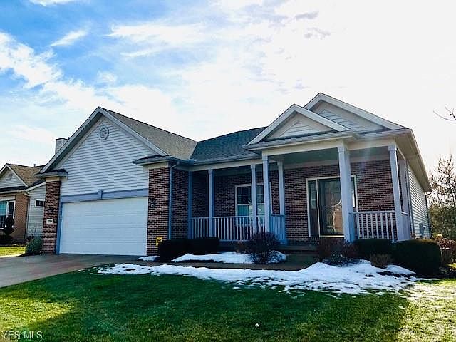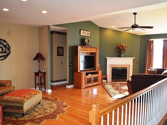 Impeccable ranch condo in the Villages of St. Ives highlights open floor plan and numerous upgrades and updates. Covered front porch leads to gracious foyer with hardwood floors and crown molding. French doors open to den/3rd bedroom. Engaging great room presents vaulted ceiling and mantled gas fireplace. Inviting kitchen features granite, newer white appliances, walk-in pantry, breakfast bar, and separate eating area with sliders to expansive deck. Deck overlooks pond and offers built-in Sunsetter awning. Fabulous finished lower level family room boasts wet bar with frig and microwave, 4th bedroom/exercise room, and full bath. All lower level furniture will remain including TV screen, projector, Bose system, ping pong/pool table, theater chairs/couch, and bar stools. Ample storage. 9 ft. ceilings and newer flooring throughout. Very open and bright. Turnkey!