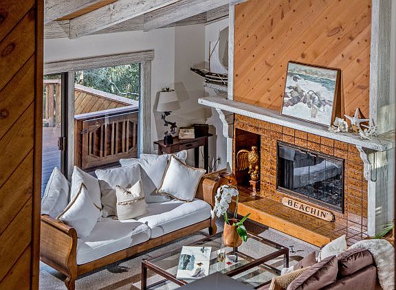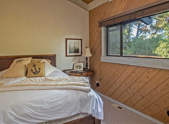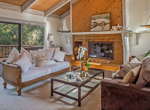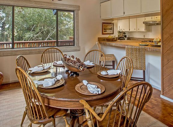 Rare to find 5-bedroom, 4-bath home. Dramatic two-story entryway. Vaulted, open beam ceiling and skylights provides fantastic "volume" throughout. Surrounded by mature live oak trees. Expansive sun filled deck. Wood burning fireplace in living room. Perfect family home or vacation rental. Close to Monterey Peninsula Country Club.
