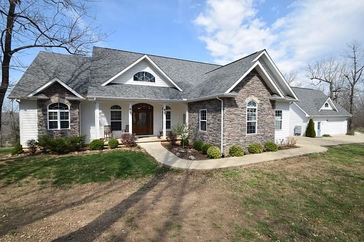 One a kind custom built home sits high on a bluff overlooking the majestic White River & Gaston's trout fishing resort. The unique features of this home include cherry wood floors & cabinets, porcelain & honed slate tile floors, quartz and granite countertops in the kitchens & baths, & the list goes on. 5 bedrooms, 4.5 baths, with nearly 5200 sq. ft. of living space on 3 acres. Downstairs offers a full kitchen and could make a perfect Mother In-Law Suite. This home is a MUST SEE!
