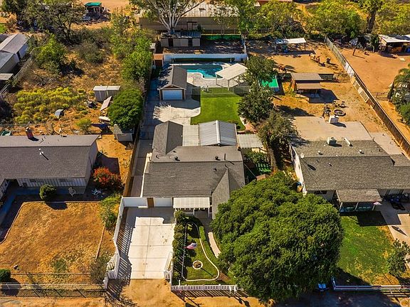 Giddy Up! This is it! Turnkey, ranch style pool home has it all! Single level completely upgraded and updated. 3 bed 2 bath home with two 1 car garages, cinderblock animal stalls, turnout and more. Some of the features include. Plantation shutters, tile (wood looking) flooring. throughout. Crown molding, Custom wood wall, wainscoting, custom fixtures, and wall mounted TVâs stay with the home! Previously wired with speakers. Not in use now.Upgraded travertine bathrooms with new fixtures, custom lighting & huge glass shower. New sinks and toilets. Kitchen has SS appliances and an almost new stove/oven. Custom sink, wood countertops and custom cabinets. Entire house has custom paint and accents.One bedroom was once used as an office & has French doors to patio. You decide what works for you. One bedroom has Fireplace with retreat area. One Bedroom has ensuite bathroom and custom closet. Outside is equally impressive. Huge covered patio. Extensive concrete patio and driveway back to your 2nd garage. (second garage almost new too!) Pool has walk in entry. And a pergola patio cover complete with mister system. Storage shed stays with property.Grass is water wise as it is artificial. Extensive landscape. Large animal keeping area with 2 cinderblock stalls, and large turnout area. Need a dog house? This home comes with a doggie bed and breakfast. Kidding but dog house is super cool. This home really has it all. Fenced and cross fenced. Just add yourself and you are done.