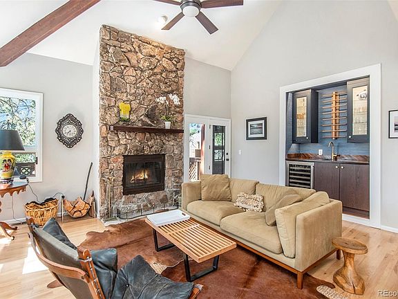 - Description: Vaulted Ceilings, Hardwood Flooring, Floor To Ceiling Moss Rock Fireplace, Beautiful Windows, Walk Out To Side Deck And Built-In Wet Bar With A Wine Fridge