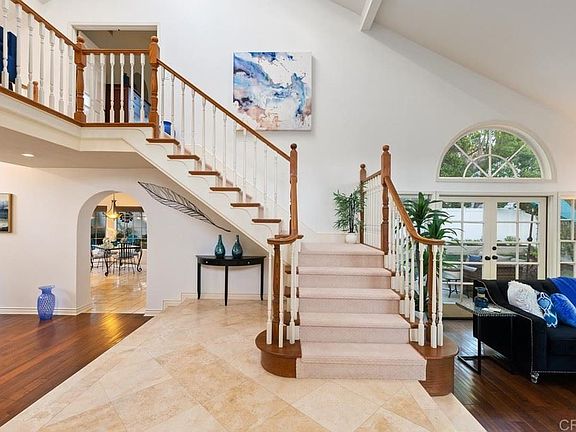 $150,000 Price Reduction! Lucky You! Step through double doors into the elegant foyer of your Beautiful Tudor Style home. This 3011 sq ft 4 bedroom + large bonus room home features polished travertine flooring & rare wood downstairs, with new carpet upstairs. Enjoy 3 cozy fireplaces. The first floor has a guest bedroom with full ensuite bath plus a separate ½ guest bath and laundry room. Enjoy the formal front room--big enough for a grand piano with French doors opening to the backyard. Entertain in the elegant formal dining room with an artistic atrium, an open concept family room, breakfast room and Country French custom kitchen. Cooks will love the Viking 6 burner stove, dual ovens, French-door bottom-freezer refrigerator, quiet dishwasher, microwave with warming drawer, wine fridge and coffee counter. Entertain outside in your inviting backyard. Upstairs is the Master bedroom with corner fireplace, a beautiful garden-style master bathroom, hall bath, oversized bonus room- perfect as office, for hobbies, games, exercise room, or make it into a fabulous theatre room. Pragmatists will also love that there is dual zone HVAC, a low $158 Solar lease, tankless hot water heater, 3 car garage, & it's repiped with PEX piping. The landscaped backyard beckons you to enjoy tranquility as you sit and relax. Close by you will find a Blue-Ribbon elementary school, a great park, restaurants, shopping and a quick jaunt to the beach. Enjoy this one-of-a-kind home with its beautiful moon garden rose trees lining the entry, well-manicured front landscaping that gives it such inviting curb appeal. Your dream home awaits you!