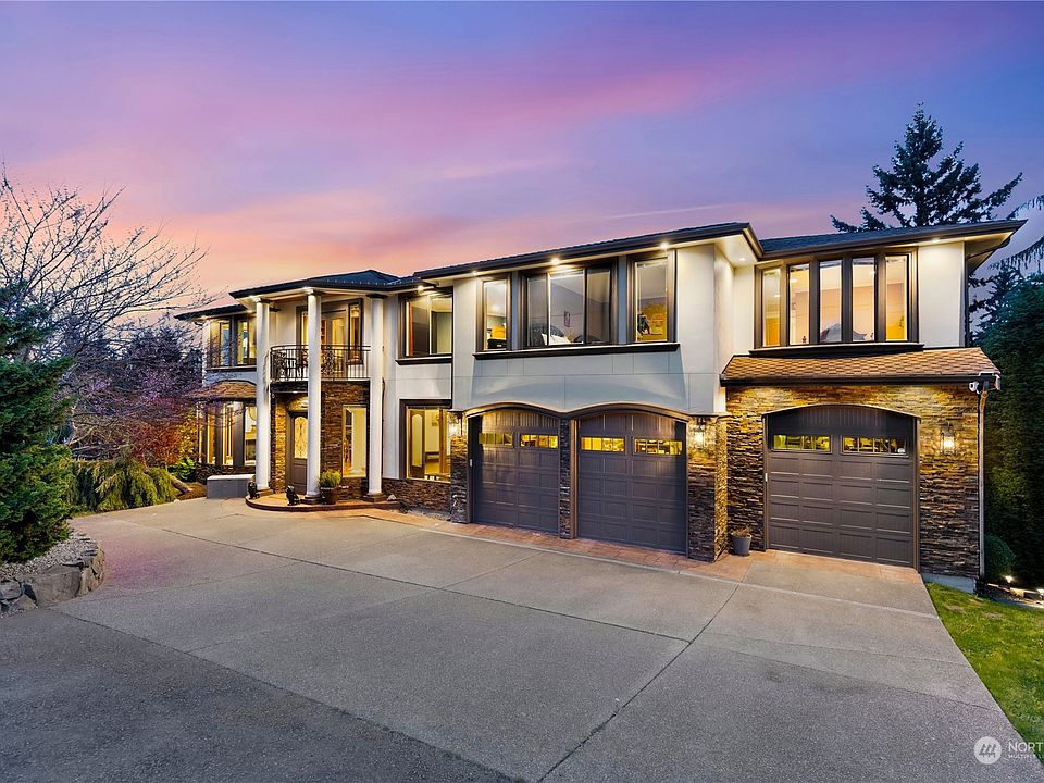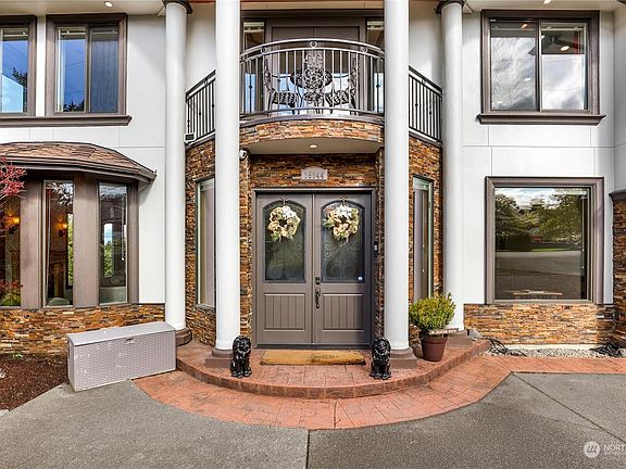 Luxury awaits in this grand, Bellagio-inspired home. Set between 3 levels, enjoy soaring ceilings, hand-carved wooden floors, 8-ft tall Siberian wood doors, multiple balconies, and deeded beach rights. Upper primary suite is massive with walk in closet and a 2-person shower. With many gathering spaces throughout the home, as well as multiple fireplaces and 6 bedrooms, this home has room for everyone! Lower level can be used as a separate ADU/MIL with separate access, kitchen, and laundry. Spacious garage easily parks 3 cars and boasts electric car charging capability. Gorgeous views of the Olympics and peek a boo views of the Sound. Enjoy the stately grounds and the newer outdoor hot tub. No detail is spared for this stunning property!