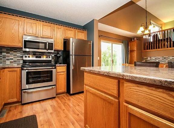 Beautiful 3 level split on large corner lot, open floor plan, new carpet, new stainless steel appliances, newly remodeled kitchen, 3 car garage, great schools, easy 35 minute drive to St. Paul, in-ground sprinklers, patio. Come See!