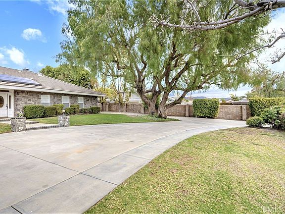 Gated Flag-lot, VERY private location and custom built in 1991 on a 20,000 sqft lot. One story beautiful home with 3025 square feet and a detached over-sized 3-car garage with an electrical sub-panel and electric car charger; perfect for any and all Garage Hobbies, housing the Collectible Car and, or a personal Creative Space, (and not being connected to the main house for concerns of noise or fumes from projects). Must see to appreciate. Many detailed appointments throughout interior include custom tile work in Kitchen and Baths, high ceilings, base molding, crown molding and see-thru fire place! Plantation shutters, lots of fabulous custom built-ins throughout interior, and every bedroom closet is a walk-in closet with a closet organizer ensemble. Bedroom #4, located at the other end of the house is currently being used as a family work-out center with the Murphy style bed conveniently hidden and the shower bathroom feature close-by. Sellers also installed a paid Solar System. The fully manicured lot allows for plenty of onsite parking. When you are ready to retreat, right in your own backyard is your own amenity packed pergola pavilion complete with a BBQ ensemble and surrounded by a commercial style 3-speed Lazy River water feature for you to raft, swim, wade or exercise to your heart’s content. This home is a rare and winning combination of many amenities. Fruit trees too. Whether you are entertaining your family, friends, or yourself, make this home your true destination today!