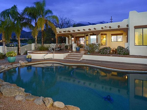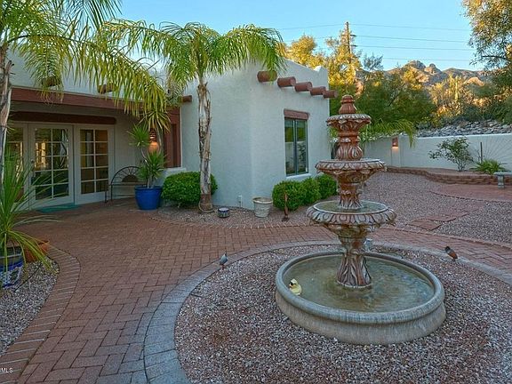 For more information on this property, contact the Listing Agent, Janell Jellison at (520) 918-5469 or JanellJ@Mindspring.com. Wonderful 4 bedroom, 4 bath custom home with separate guest house that includes a bedroom, bath, living room, kitchen/dining area, and exercise or storage area. This home sits on a very private lot with stunning vistas of Catalina Mountains and Oro Valley city lights. 2 separate outdoor entertaining areas, grassy yard and citrus trees off the formal living and dining room. Off the family room step outdoors to the pool and spa. Enter thru a charming courtyard with fountain.