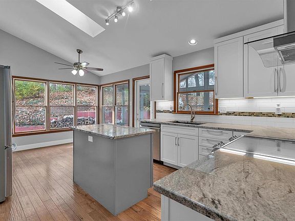 Start your new year in this freshly updated home. Gleaming hardwood greets you as you step inside from the sprawling covered front porch into this 4 bedroom, 3.5 bath open concept ranch. Still working from home? This beauty has a great view from large window in the main floor office accented by french doors. If you enjoy entertaining, you will love the eat in kitchen with granite counter tops, pantry, open to the living room where your guests can chill by the fireplace or sit at the breakfast bar while you prepare snacks. The three season room over looks the very private terraced back yard. Featuring a large update en suite bathroom and walk in closet, the primary bedroom walks out to the secluded courtyard style patio. In the lower level, you will find a full bath, a 4th bedroom with egress window and walk in closet, and a cedar closet. Party like a rock star at the bar and karaoke space in the newly renovated basement. PS. This one has paid for solar panels and wine storage. Additional Rooms: Sun Room, Wine Cellar