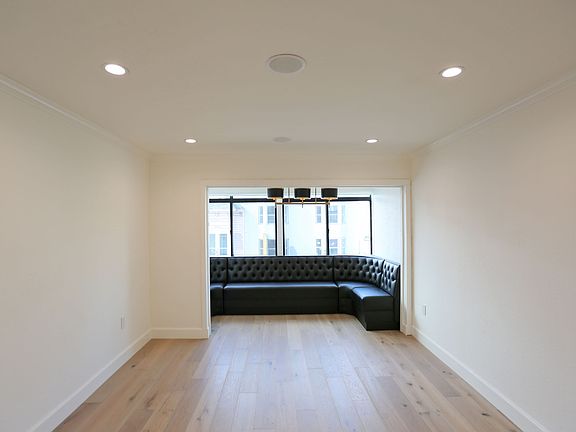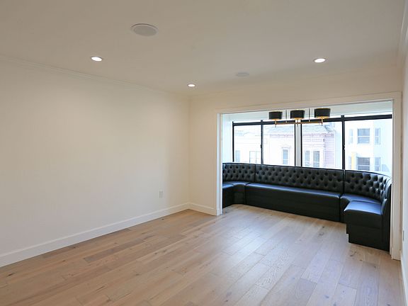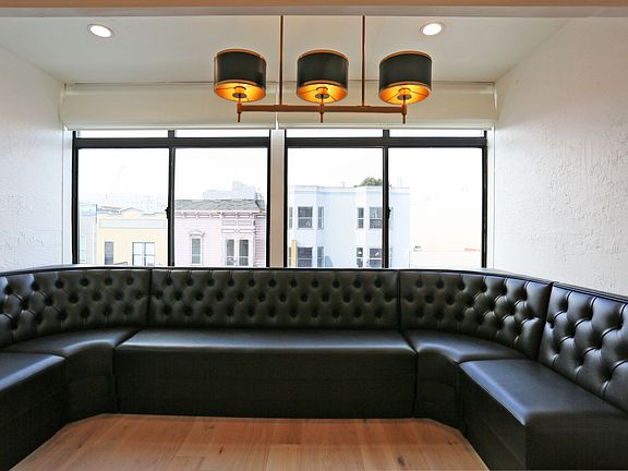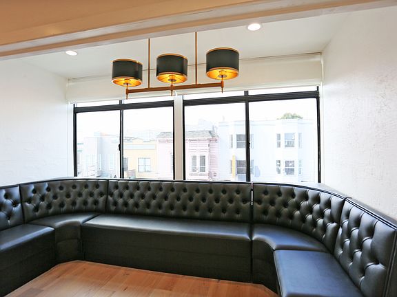 Elegant black couchOverlooks mission streetStainless appliancesBuilt-in banquetteWalk-in storage closetHis-and-hers sinksElectric stove