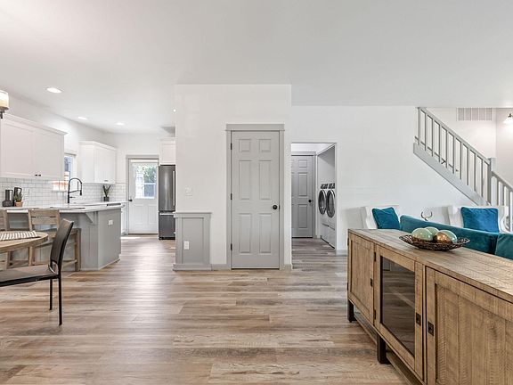 Completely remodeled with modern farmhouse styling, this 4-bedroom, 2.5-bathroom home offers luxury and comfort in a peaceful Bend neighborhood. The spacious open floor plan features abundant natural light and a cozy fireplace. The gourmet kitchen boasts high-end KitchenAid Pro appliances, quartz countertops, and a subway tile backsplash. Enjoy the spa-like primary suite with a custom tile shower and waterfall showerhead. Additional features include Electrolux front-loading washer/dryer with pedestals, laminate floors, luxury carpet, and tile bathrooms. Custom closets in all bedrooms and a massive bonus room make this home even more special, perfect for movie nights or whatever else your mind can envision. The private backyard oasis is fully hardscaped with privacy screens and mature trees. Located near parks, trails, and downtown amenities, this home is better than new. Schedule your private tour today to experience the beauty of 2985 NE Hope Drive!
