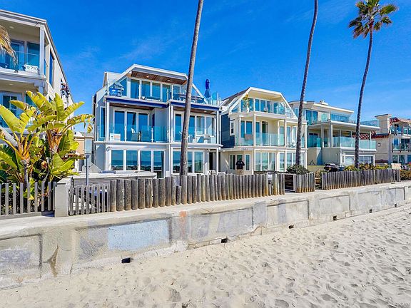 Discover the ultimate oceanfront lifestyle with this luxurious and modern penthouse in South Mission Beach! Wake up to the sounds of the ocean and direct sunsets from this stunning waterfront property. The open floor plan boasts an expansive great room that serves as an ideal space for cooking, dining, and relaxation with La Cantina doors that offer seamless views of the ocean that you can enjoy year-round. The townhouse to penthouse concept features 2 bedrooms and 2 baths above the ground floor unit with the kitchen, great room, and additional bedroom suite and bath on the top floor. Experience modern living at its finest with high-end amenities, including Silestone counters, tankless water heater, Decor appliances, central A/C, electric fireplace, and a 2-car side-by-side garage with a 240v outlet. The contemporary design and stylish accents blend effortlessly with the relaxing comforts, creating a perfect balance of comfort and sophistication. Enjoy living in a quiet neighborhood that's within walking distance of everything Mission Beach has to offer. The home is outfitted with top-of-the-line features, including custom closets by California Closets, blackout shades in the bedrooms, and automatic shades on west-facing windows. This home comes fully furnished and is move-in ready, so you can start enjoying the beach lifestyle just in time for summer!