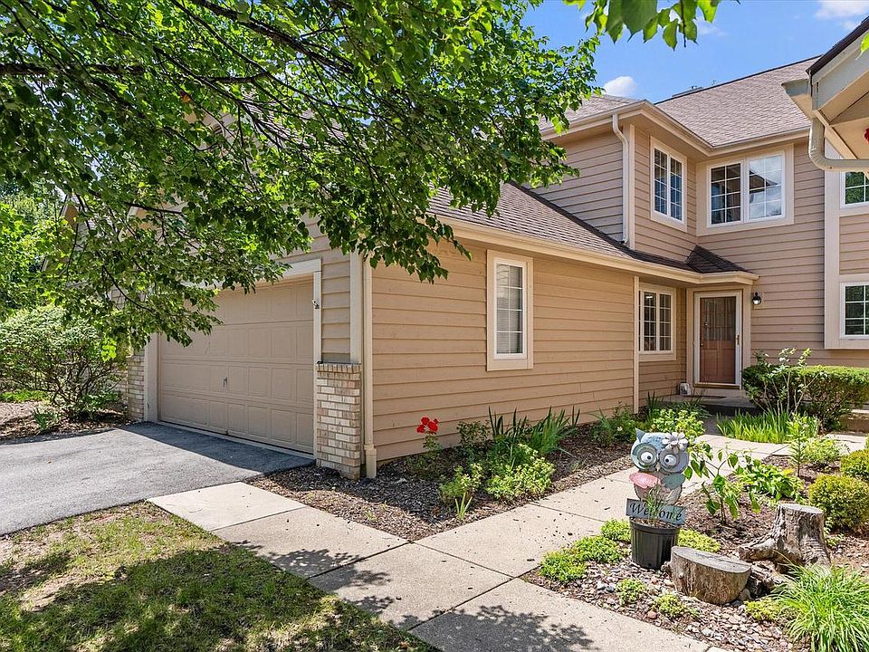 Welcome Home! This east-facing condo features 3 beds + 3.5 baths and a finished lower level! Located in beautiful Brookfield w/ desirable Elmbrook schools. Spacious floor plan features open living area w/ cathedral ceilings. A beautiful wall of windows off the living area opens to a private deck overlooking a private wooded view. First floor Primary Bedroom w/ en-suite features a large walk-in closet & luxurious bathroom w/ two vanities, walk-in shower, and jetted tub. Eat-in kitchen with stainless steel appliances, plenty of cabinets, & breakfast bar. First floor laundry for convenience! Upstairs, you'll find two spacious bedrooms & loft area w/ built-ins. Lower level offers a large rec room and full bath, plus tons of storage. Updates include appliances, carpet, furnace, & water heater!