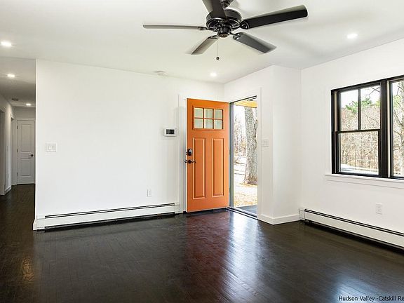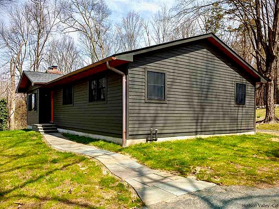 Top to bottom remodel in one of the most desirable and convenient locations in Ulster County. Value packed mid century ranch home just outside of Historic Stone Ridge will surely please and there are so many extras rarely seen in most home renovations. From the extensive bluestone work to exterior lighting, copper gutters, new insulation and even the garage got the royal treatment with new seamless metal roof, new garage doors, new lighting, new insulation, sheetrock and fresh paint. But what's most impressive is the home itself. Essentially like new, you get low maintenance, zero headaches, and maximum enjoyment. Recent improvements include new roof, siding, Anderson windows, insulation, recessed lighting, updated electric, plumbing, brand new tiled bathrooms, brand new kitchen with tiled backsplash, large island, solid surface counters, new stainless steel appliances, plus hardwood flooring, new trim, doors, fresh paint, finished walkout lower level, new heating system, brand new septic system, integrated smart home/security system, walkways, patio, and so much more. All this on nearly 2 elevated acres with seasonal Catskill Mountain views and only minutes to every convenience imaginable. Ready to go camp fires and plenty of nature for the littles to explore. The detached garage is quite large and has room for the studio or home office. And if you don't need a garage the entire space is newly insulated and painted and with the addition of some ductless mini split units you can have full heating and cooling making for a very private and spacious home office ideal for zooms and remote learning. You'll appreciate quick access to uptown Kingston, High Falls, Rosendale, and Accord which are all extremely popular and offer a full range of things to do for everyone. Roughly 15 minutes to both Woodstock and New Paltz only add to the upstate enjoyment. Whether it's rail trails or local farms, restaurants or shopping, orchards or breweries, parks or playgrounds, the options are virtually endless. You get the great house and great location, plus the proximity and convenience. A total package and ready for immediate purchase and full summer enjoyment.