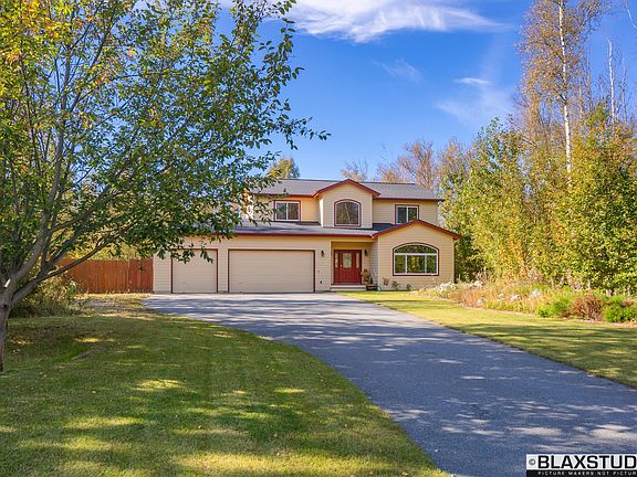 Remarkable Wasilla home located on a private fenced acre with paved streets and gorgeous trees! This home features solid surface counter tops, upgraded kitchen, pantry, laminate flooring, 2 story entry, all bedrooms on the second floor. Unwind in either of the 2 family rooms located on the 1st floor or get out back and BBQ or soak in the hot tub on the massive back patio! Fenced RV pad!