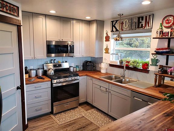 The views of the West Elk Mountains and looking over the Leroux Creek Valley below are what makes this custom home a must see! This unique home has three (3) levels. The basement level is approximately 666+-sf with its own access. Originally designed as a mother-in-law apartment with a small kitchen and dining area, along with a large bedroom with a full size bath. Main Living Area/2nd level is approximately 832+- sf. Master Bedroom and one full bath are located on the main level, along with the living room and very spacious kitchen/breakfast bar/dining area. Large deck to the north right off the kitchen and a covered deck on the south side. Outside stairs will be completed to the 2nd level entrance when the weather is better to access the main level. Currently the access is via the basement apartment. 3rd level, approximately 535+- sf, features a 13.5 x 10 TV Room area, 7.5 x 6 office space area, 13 x 14.5 bedroom + a full size bath. There is a bedroom/bath on every floor which makes it a perfect home for a AirBNB or VRBO. Beautiful natural setting nestled on a hillside with pinons, juniper trees and lots of wildlife. No homes can be built to the west of the property due to a Conservation Easement on the bordering land above the property. Energy efficient in-floor radiant heating system with a tankless hot water heater/boiler, engineered septic and one (1) domestic water tap. Luxury vinyl flooring, solid wood trim and interior doors, throughout the home with plenty of storage. Laundry room is between the basement & 2nd level for convenience. This 3.86 acre property is on a hillside and would not be suitable for livestock. Much of the furnishings are negotiable