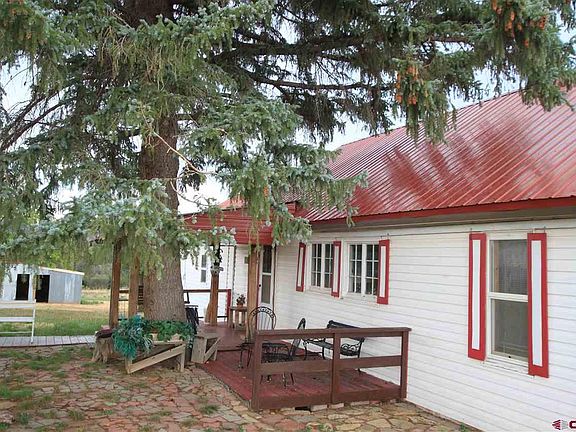 Cute Farm House set among towering spruce trees with development potential. Incredible La Plata Mountains views. Easy access of Road T less than a mile from Dolores. The yard also has a pear tree and apricot tree. House comes as is. No improvements or updates will be made to the home. Plenty of acreage to use this house while you build your dream home and then keep this home for guest house or other use. Two bedrooms upstairs and a large bedroom on the main living level. Great out door living areas with covered porches over all the entrances to the home with plenty of room for out door seating and living. Metal Frame and sided garage with a timber frame Carport. Storage/Tool sheds attached to the back of the carport. Small horse barn just need to bring your panels and some hay and you are ready to go.