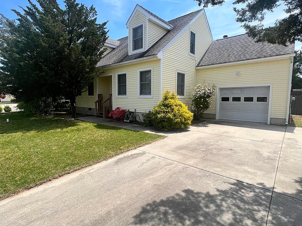 This almost 1600 sq ft two-story 4 bedroom 2 bath home is located just 2 blocks to the beautiful Delaware Bay beaches. The first four floor features nice sized living room with gas fireplace, formal dining room with sliders to screened in rear porch, eat-in-kitchen, full bath, laundry room, access to attached garage and plenty of closet space throughout. Also, on the first floor you will find a large bedroom with walk in closet and access to the full bath. Upstairs are 3 additional bedrooms and full bath. The primary second floor bedroom has a door leading to a small deck to enjoy the scenic and peaceful view as you look out over Cox Hall Creek Wildlife Nature Preserve. Rear fenced in 75 x 100 lot with shed. This home has tons of potential and just needs a few updates. Easy to Show.