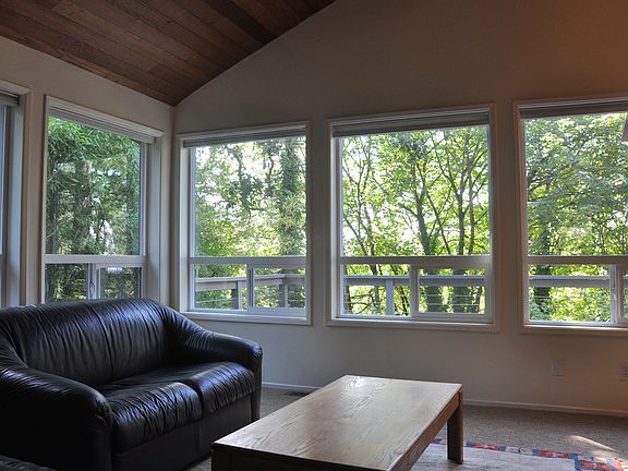 NW contemporary designed by an architect!- filtered views of the city. Dead end street - trailhead to Hendricks Park trails at your front door! U of O nearby! Vaulted ceilings, fireplace, lots of windows, sauna, wonderful deck, nice grounds --- a private oasis! This home will steal your heart!