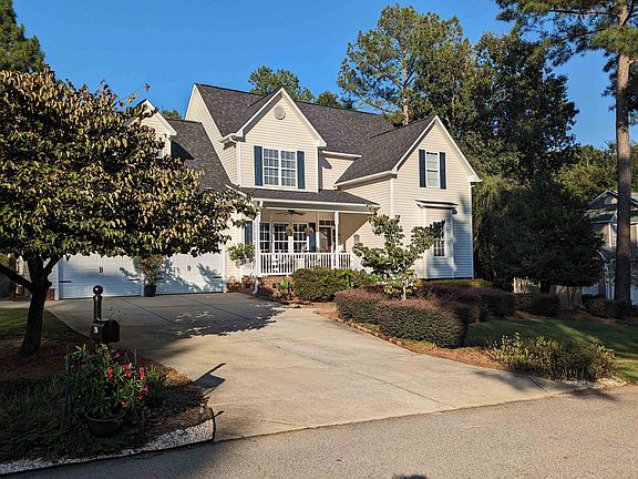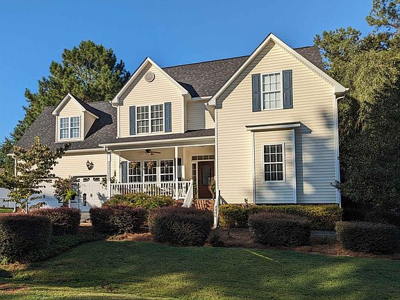 Come home to this gardener’s and entertainer’s paradise. 1st floor primary suite with separate tub and walk in shower. Double vanities in both full baths. Updated kitchen with granite counter tops, tile backsplash, under cabinet lighting and stainless steel appliances. Sitting room, family room, and walk in closet on the 2nd floor. Beautiful hardwood on 1st and 2nd floors. Get cozy inside the living room with vaulted ceilings and vent-free gas burning fireplace. Storage galore: oversized pantry, two car garage with overhead shelving and peg board throughout. Enjoy your favorite beverage on the front porch swing. Spacious lot with private fenced in backyard, newly painted deck, patio and perennial gardens. Take your shoes off and enjoy the luscious zoysia grass before relaxing in the heated salt water swim spa. Convenient parks, shopping, and dining. Soon, zoom around the Triangle with the new 540 Expressway with 2 convenient interchanges nearby.